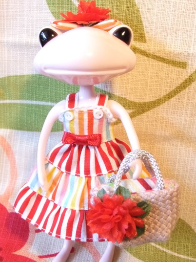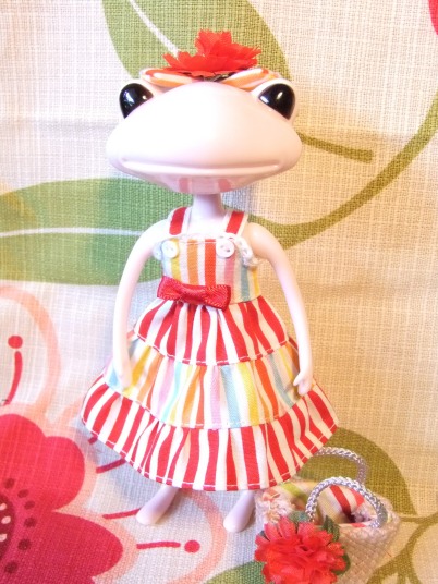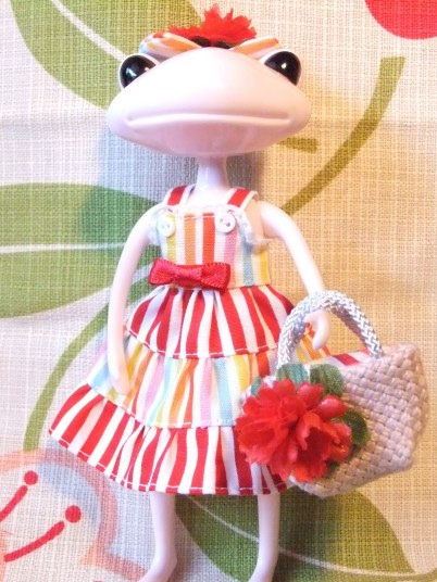 キャンディーカラーと赤白ストライプの組み合わせで作りました。